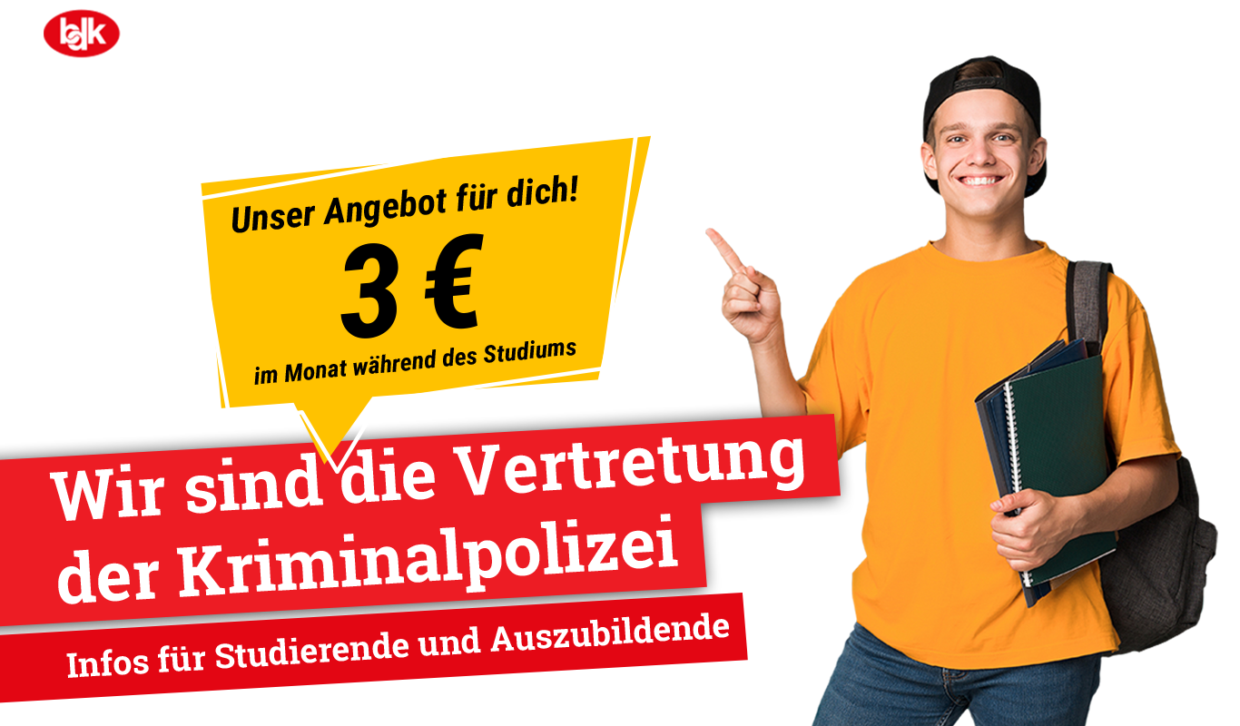 Im Rahmen unserer fachlichen Möglichkeiten unterstützen wir dich bestmöglich im Studium und auch darüber hinaus. Neben dem persönlichen Austausch bieten wir mit unseren themenbezogenen Pocket-Tipps, unserer monatlich erscheinende Fachzeitschrift „DER KRIMINALIST“ sowie unserer Kooperation mit der KFB-App (Kriminalisten-Fachbuch), die Expertenwissen in mehr als 113 Kapiteln vermittelt, tatkräftige Unterstützung im Studium und polizeilichen Alltag.