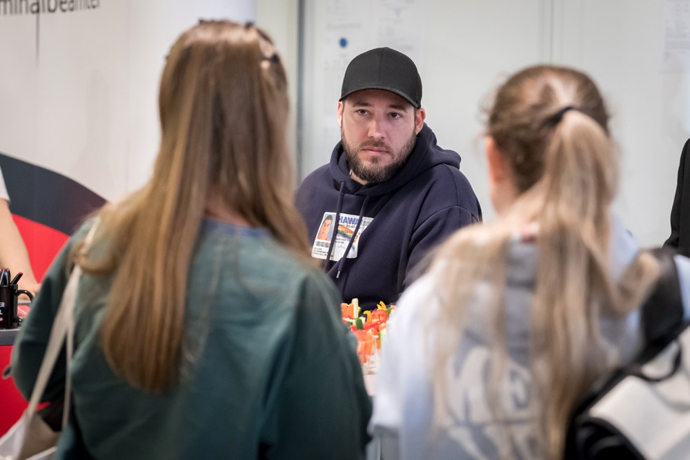 Der Moment wirkt nach – und trifft offenbar einen Nerv im Publikum. Er steht sinnbildlich für das, was diesen Tag der Gewerkschaften prägt: Austausch, Orientierung und die gemeinsame Suche nach Interessenvertretung innerhalb der Polizei Brandenburg. Das wird auch später bei den Gesprächen an unserem Infostand deutlich. Aber wir bemerken noch mehr. Und zwar die Lust und das große Interesse an der Arbeit bei der Kriminalpolizei.