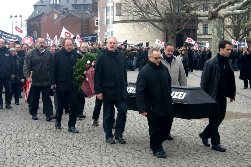 Fotos zur Kundgebung des BDK anlässlich des Neujahrsempfangs der FDP im Düsseldorfer Maritim Hotel am 20.01.2008 und dem anschließendem Trauermarsch durch die Düsseldorfer Altstadt mit Kranzniederlegung beim Innenministerium.