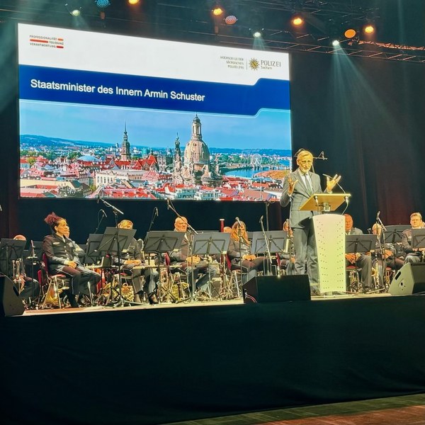 Wir danken unter anderem dem sächsischen Innenminister Armin Schuster und Landespolizeipräsident Jörg Kubiesa für ihre wertschätzenden Worte, ebenso dem Inspekteur der Polizei Sachsen Petric Kleine. Umrahmt wurde das Programm vom sächsischen Polizeiorchester. Wir danken auch Maik Ebersbach für das Grußwort, stellvertretend für alle Gewerkschaften.