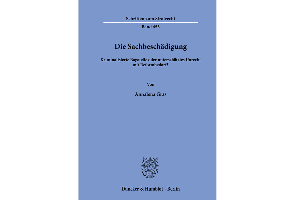 Annalena Gras widmet sich der Frage, wie Sachbeschädigung (SB) im Strafrecht einzuordnen ist – als Bagatelldelikt oder als unterschätztes Unrecht mit erheblichem Reformbedarf. Sie zeigt, dass SB in der Öffentlichkeit besonders sichtbar ist, während sich diese praktische Relevanz im geltenden Tatbestand kaum widerspiegelt. Die einschlägigen Vorschriften im StGB erscheinen undifferenziert, zusammenhanglos und unübersichtlich, was die rechtliche Handhabung erschwert.