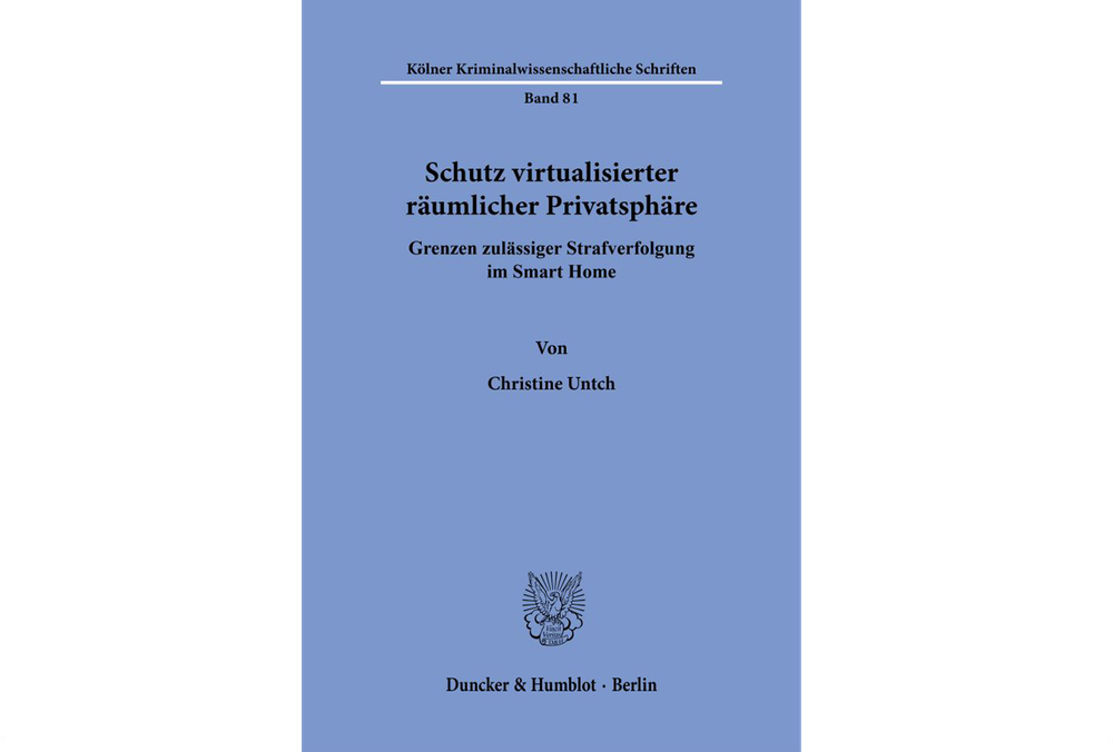 Das „Smart Home“ und sich daraus ergebende Möglichkeiten und Grenzen für die Strafverfolgung untersucht Christine Untch in ihrer aktuell publizierten Dissertation. Neben der umfassenden Darlegung des Begriffs, der Funktionsweise und der internen wie externen Datenübertragung im Smart Home, werden mögliche Grundrechtseingriffe und Möglichkeiten und Grenzen der Anwendung bestehender Eingriffsnormen diskutiert, z. B. §§ 100a-c, 94ff StPO.